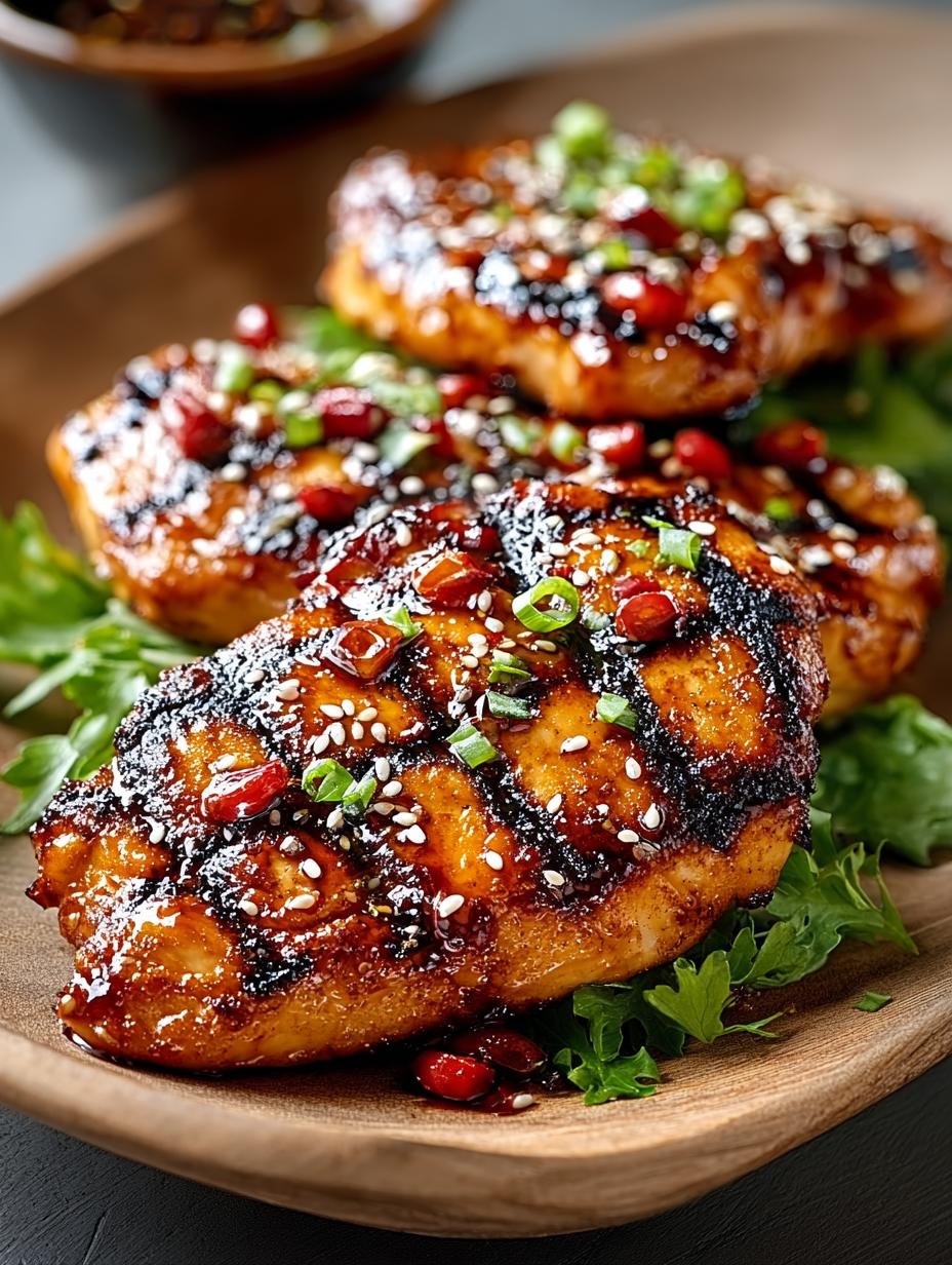 Indulge in the tantalizing flavors of this Asian Grilled Chicken recipe, featuring juicy chicken breasts marinated in a savory blend of soy sauce, fresh garlic, and zesty ginger.